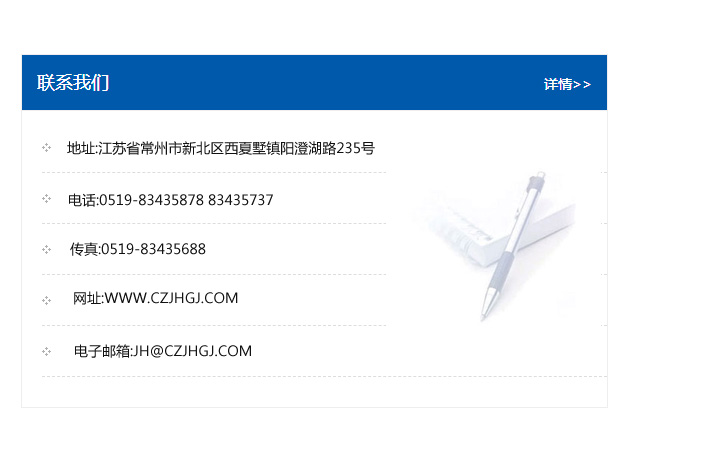 傳真:0519-83435688    郵編:213135    網址:WWW.czjhgj_com.gdgending.com    電子郵箱:JH@czjhgj_com.gdgending.com